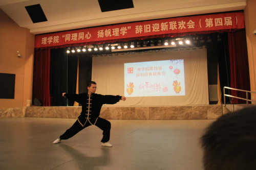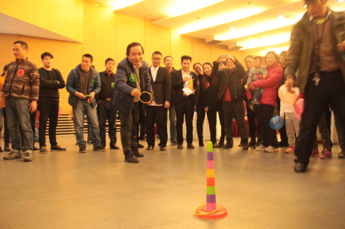 联欢会上,院长陶祥兴教授首先致辞,他简要总结了在过去一年学院所取得的成绩,感谢大家的辛苦付出。他希望在新的一年,全院师生更加齐心协力,同理同心,追求卓越,各方面更上一个台阶,并祝愿大家新春愉快、身体健康、阖家幸福。随后,在主持人胡月、王杨、马鹏飞和贺莎的主持下,老师们依次登台演出,有配乐诗朗诵、有男女声独唱、豫剧清唱、乐器演奏、武术表演,还有集体舞蹈,丰富多彩的节目充分展示了各自的才艺。演出结束后,紧接着又开始了趣味体育活动。所有教职工随机分为“金鸡报晓”、“闻鸡起舞”、“机不可失”和“鹤立鸡群”四个队,开展了趣味性很强的”萝卜蹲”和体现集体合作能力的“走钢丝”等竞赛活动。各组的比分你追我赶,好不热闹。最终,四支队伍以各项比赛累计的总分决出了名次。