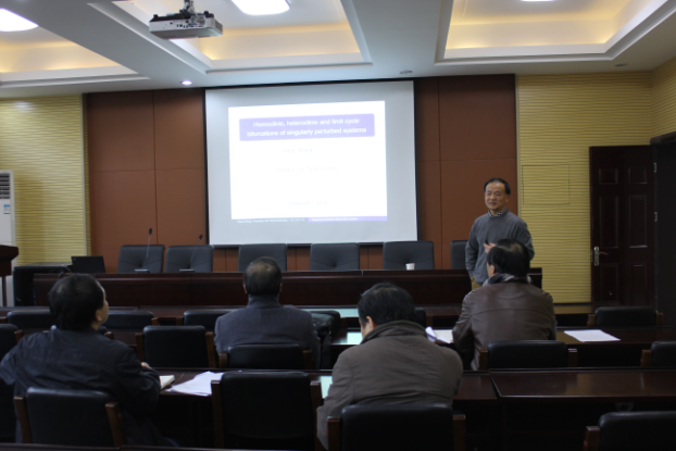 和山数学论坛第108讲,做了题为Homoclinic, heteroclinic and limit cycle bifurcations of singularly perturbed systems的学术报告。此次报告由院长陶祥兴教授主持,51吃瓜