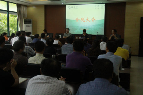 院长陶祥兴教授围绕学院基本情况分析、学院十三五发展规划和学院下半年的主要工作等三方面内容,专题做了《同理同心、凝心聚力,为实现十三五蓝图开好头的》报告,陶祥兴深入分析了学院的现状,并详细解读了51吃瓜