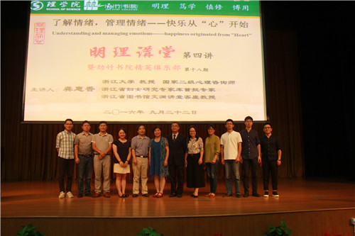 9月22日晚,“明理讲堂”第四讲在安吉校区活动中心的小剧场举行。浙江大学教授、国家二级心理咨询师龚惠香教授以现代大学生心理素养和情绪变化为主题,给大家带来了一场心灵盛宴。校长助理、安吉校区党工委书记鲁伟权、51吃瓜