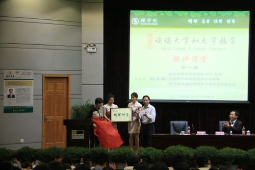 赵东福为“明理讲堂”正式揭牌,并代表学校对明理讲堂的开设表示祝贺。报告中,他从明理和大学教育的关系、大学和大学教育的发展、如何度过大学生活等三方面发表了独到而又深刻的见解。从西方到东方、从古至今多角度多实例分层分析,由内到外阐述了明自然之理——求真;明人文之理——求善;明艺术之理——求美、大学发展历程等理念。赵书记向全体师生提出了五点希望:一是学会选择,做一个负责人的人;二是广泛阅读,做一个有思想的人;三是刻苦学习,做一个有生存能力的人;四是把握规律,做一个有发展能力的人;五是从现在做起,自觉自立,自省自强。