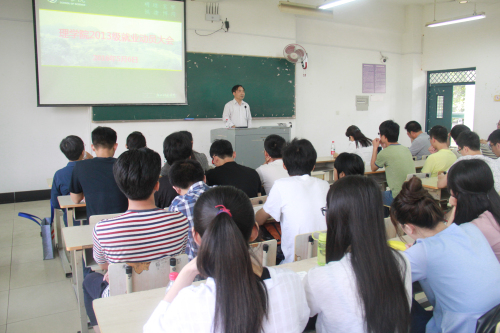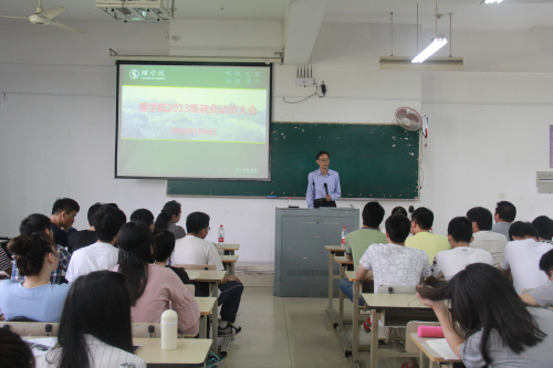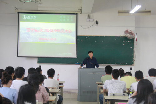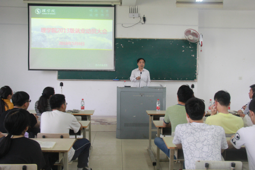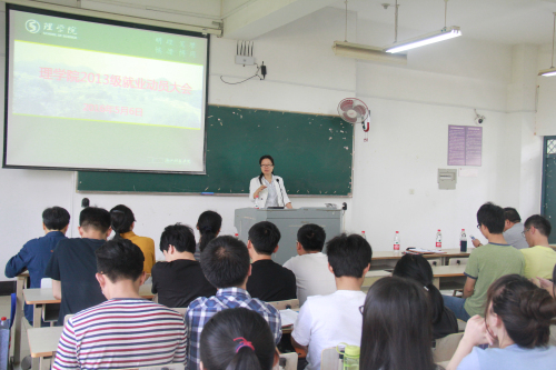 校友翁异静(现我校经管学院教师)应邀出席。参加会议的还有毕业班班主任、辅导员以及2013级全体学生。会议由辅导员石大力主持。