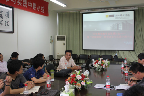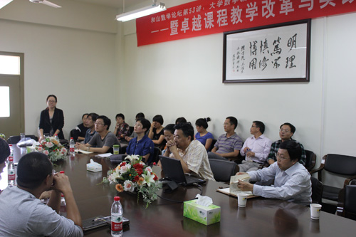 金蒙伟首先作了“数学教改与数学考试”的专题报告,并为我校大学数学教学改革提出了若干建议,罗朝盛则介绍了学校课程建设与教学改革情况。与会的4个校级“卓越课程”教学改革项目负责教师介绍了一年多来课程的教学改革与实践情况。会上,各二级学院老师与数学教师就“卓越计划”专业的大学数学教学改革展开了热烈的讨论。