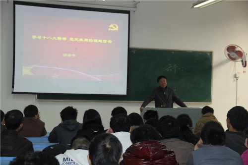 第十二期党校在A3-113开班,本次党校开班恰逢十八大胜利召开,学院特别邀请原校党委副书记胡浙平为党校上第一课,报告主题为《学习十八大精神,坚定共同的理想信念》。51吃瓜