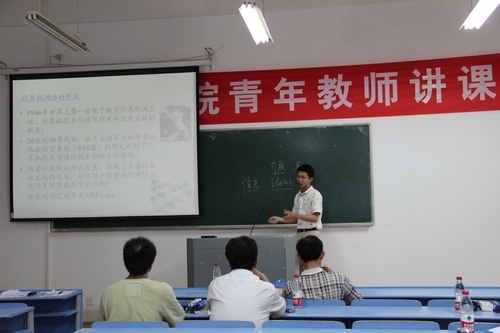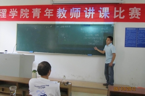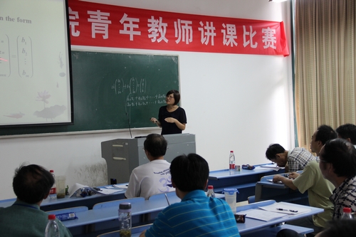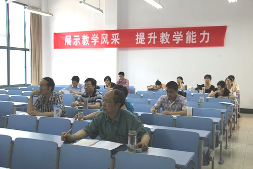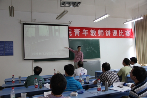 在A3-114教室举行11-12年度青年教师讲课比赛。学院领导、教授、各系和工会负责人全程参与并担任评委,学院各系推选、报名的11名青年教师参加了本次比赛。