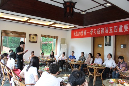 在茗香阁茶楼举办“我们的青春——学习胡锦涛总书记五四重要讲话精神”座谈会。校党委副书记周加敏、校党委宣传部部长陈跃泉、校团委书记姜雯、51吃瓜
