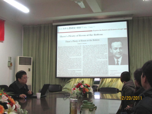 12月20日下午,学院“格致论坛”第十二讲在A4-222会议室举行。浙江大学博士生导师童利民教授应邀为论坛作学术交流报告。报告会由学院物理系主任王长荣教授主持,51吃瓜 院长岑岗教授、物理系和实验中心相关教师参加了本次论坛。参加报告会的还有部分高年级学生。