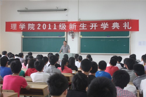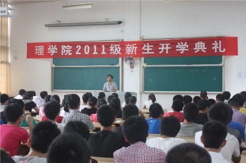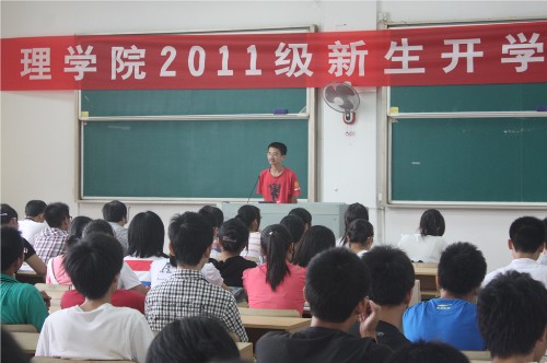 院长岑岗发表了热情洋溢的致辞,他首先向新生们的到来表示了热烈的欢迎,并向新生们提出了几点要求:第一, 希望大家树立远大理想、立志成才。第二,希望大家努力学习, 培养创新能力。第三,希望大家加强自身修养,使自己成为一个高尚的人。学院副院长陶祥兴向新生们提出了几点建议:一是调整心情、从头开始。二是树立信心,把握发展。三是培养良好习惯,享受大学生活。教授代表薛有才老师、老生代表学生会主席沈才来同学以及新生代表信计112班杨佳奇同学分别上台发言。