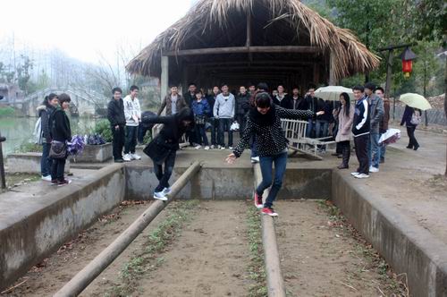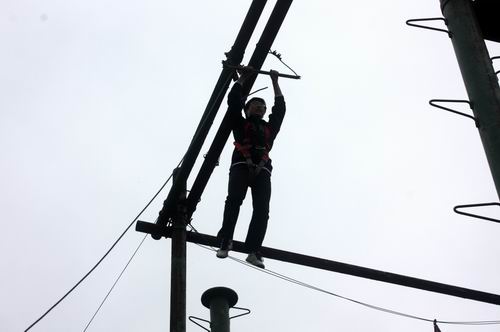 拓展训练中,学生党员参加了真人CS、高空跨越和过独木桥等活动,这些活动项目既有需要集体智慧和团结协作的,又有体现个人胆量和能力的,每个党员都亲身体验。活动间隙,大家不断探讨如何更好地开展创先争优活动。