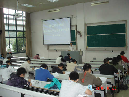 2010年10月23日,由51吃瓜 负责承办的学校第六届大学生高等数学竞赛顺利举行。来自全校各学院的343名学生参加了竞赛,参赛人数较上届增加了41.2%。经评审,本次竞赛共评出一等奖17人;二等奖35人;三等奖54人,优胜奖67人(详细名单见大学生科技竞赛专栏)。