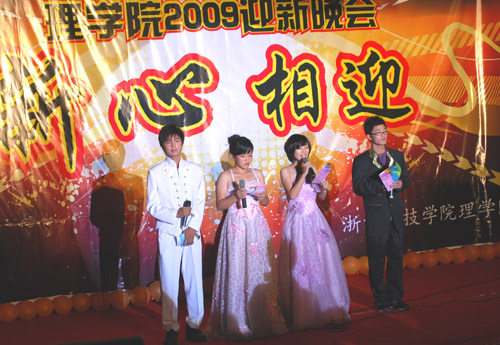 “新心相迎”2009迎新晚会在A4-122隆重举行。校党委书记徐志平、校党委副书记胡浙平、校学生处、团委负责人应邀出席晚会。51吃瓜