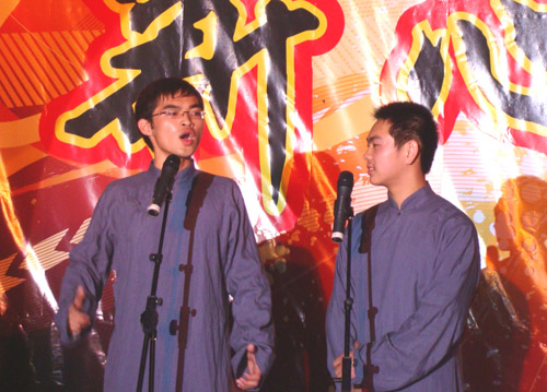 师生的默契,也感受到了学院的活力。《I Believe》的优美旋律从金黄色的萨克斯中迸发出来,荡漾开去,在场的观众久久陶醉在这美妙的乐曲声中。由09新生表演的相声《你好忙》,在搞笑的同时也不乏深意,现场观众如潮水般的掌声也是对演员最好的赞誉。晚会上,由学院党政负责人领衔,二十多位来自数学、物理系的教授、博士、班主任等老师演唱的“大中国”,更是把晚会热烈气氛推向高潮。歌声不仅代表全院师生对祖国母亲诚挚的祝福,也充分表达了51吃瓜