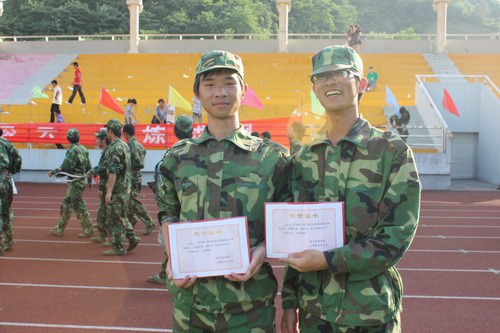 学生组成的第三方阵获得“军训会操优胜排”,应用物理082班所在的二十三排获得“内务卫生优胜排”。
