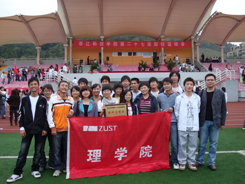 共有32名教职工运动员、82名学生运动员参赛。运动员们拼出了自信、毅力、勇气,战绩比往届进步了不少。其中信计071班的孙晓蕾同学一举夺得女子铅球第二名。教工方面更是旗开得胜,邓学明老师摘得男子1500米桂冠,混合4*100接力第一也被我们收入囊中。最后,教工团体总分屈居全校第四,学生团体获校“精神文明奖”。