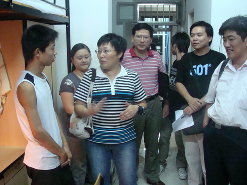 在新生宿舍中,领导们耐心地和同学们交流,了解他们报名缴费及住宿情况,关心他们的生活问题,同时,给每个寝室的同学上了进入大学的第一堂课——“礼貌待人”,并再三叮嘱他们注意安全,提醒他们防止上当受骗。